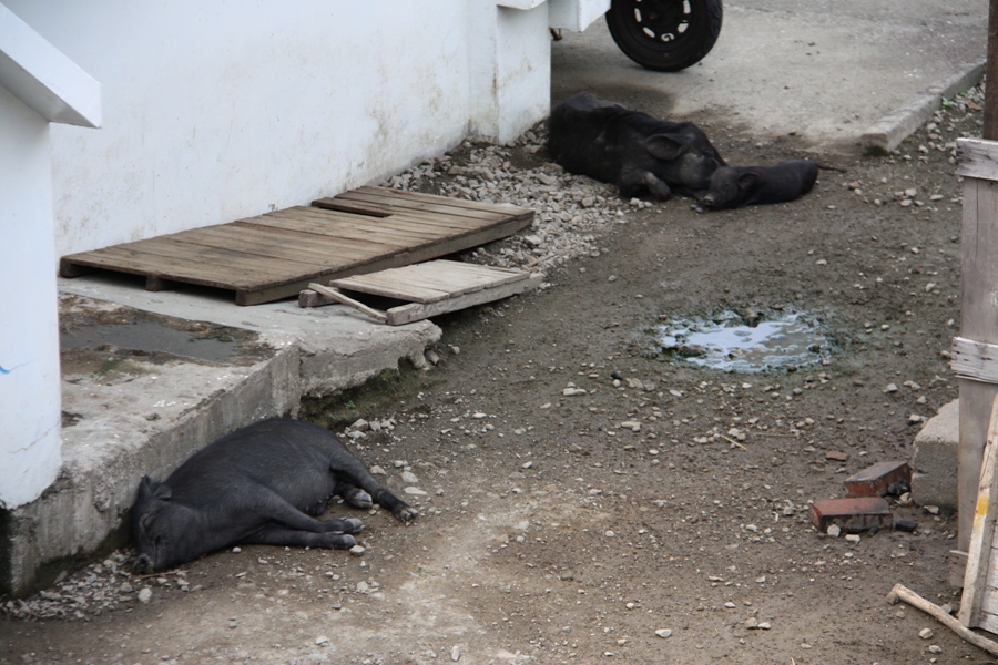 民宿對面的山豬還真悠閒